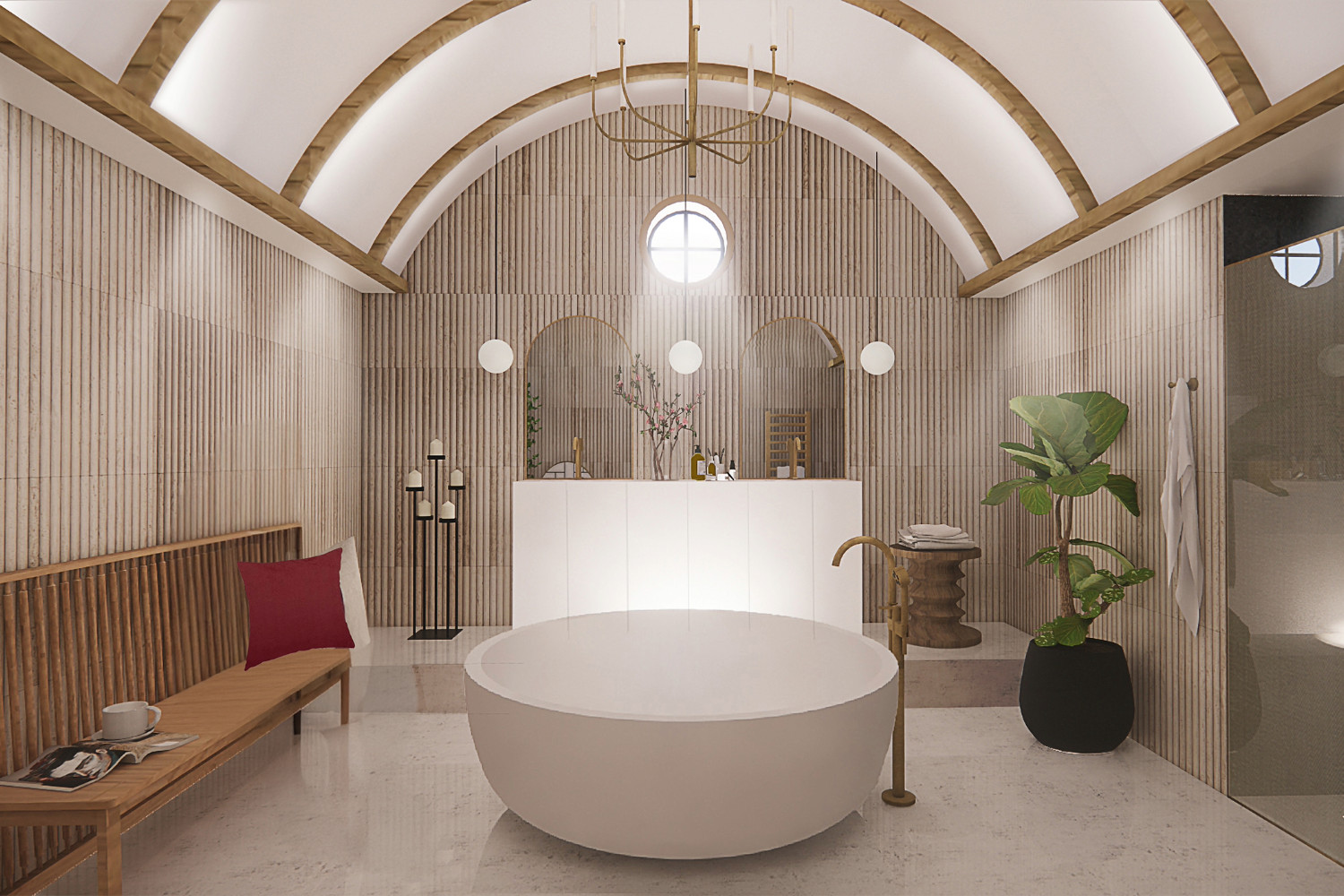 Vaulted Luxury Bathroom with Fluted Tiles